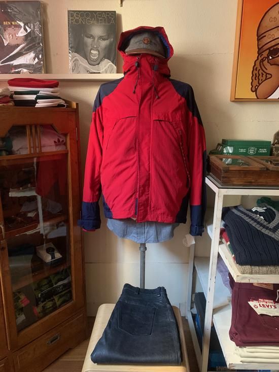 こちらはポロスポの人気シリーズのスノーボードコレクションのタグ付きデッドストック品になります。素材パリッというシェルではなく、この年代でよく使用されているデュポン社のナイロンのようなコットンナイロンのような呼吸を感じるナイロン素材、ライニングはポリエステルで厚みはそこまでないですが保温性の高いスノーボードシェルをコンセプトに作ったジャケットです。ビンテージのパタゴニアのジャケットをサンプリングしたのではないかな?と彷彿させるフロントの大きめのサイドジップポケットも機能的にも使い勝手よし。襟高でフロントをしっかりととめても様になります。カフスのアジャスターもがっちり一周閉まるので裄丈も全く気になりません。