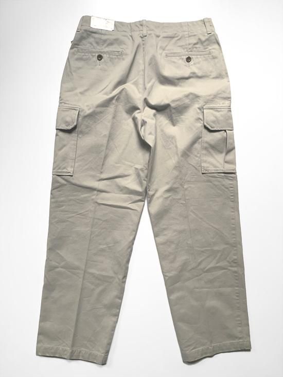 こちらは90年代にリリースされたコットンツイルの6Pカーゴパンツの未使用デッドストック品となります。ブルックスの中でもトラウザーなどは比較的見かけるアイテムですが、ビンテージならやはり珍しいカーゴパンツというものでしょうか。この年代のわりにやや浅めな股上に裾20cmと幅が狭いテーパードがまた魅力的。マチ付きカーゴポケットのサイズも上品な大きさ。足元はドレスシューズやローファーなどのセットですっきりと収まるイメージ、コンバースのオールスターなど薄めのスニーカーとの組み合わせも◎だと思います。そしてやはり気になるツイル生地、この年代らしく今ではレアなシルキーでしっかりとオンスのあるいいやつ。裏地の目も美しい。エイジングも期待できる一枚です。