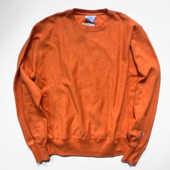 スウェットの定番中の定番、縦編み素材を横向きにする事により縦の縮みを防ぎ、サイドは横縮みを防ぐ為に縦編みのリブを使用した王道の"REVERSE WEAVE(リバースウィーブ)"。こちらは2019年のUSA企画のモデルで、通好みの"目無し"のオレンジカラー。一般流通数はかなり少なめと思われる珍モデル。チャンピオンらしい昔ながらのグッドオレンジです。